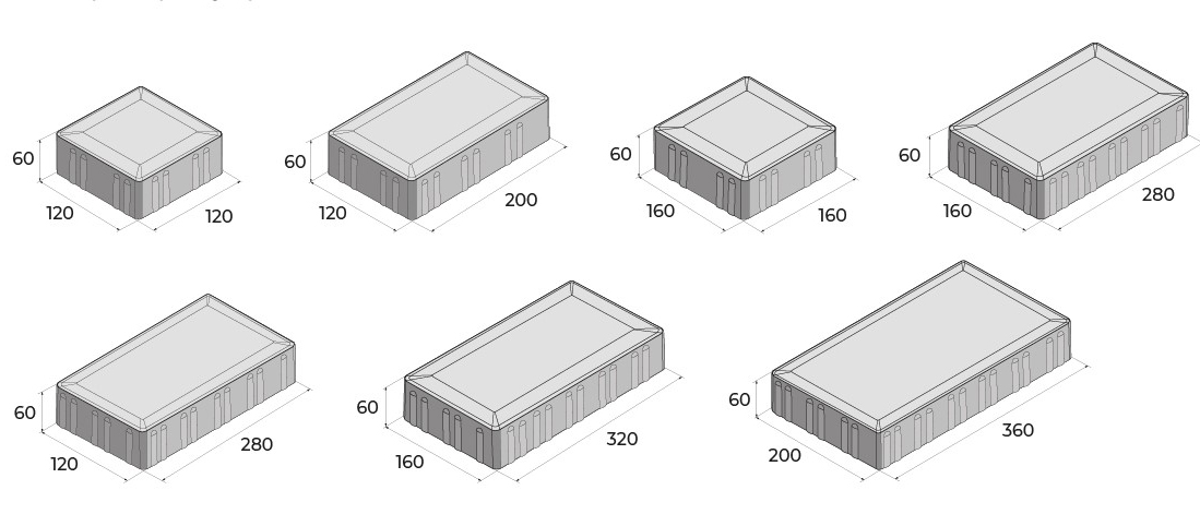 это коллекция, состоящая из шести среднеформатных элементов 12х12, 20х12, 16х16, 28х16, 32х16, 36х20 см. Является аналогом польской тротуарной плитки Идео Полбрук. Позволяют создать сложную раскладку с непересекающимися швами. Также в нашем магазине в наличии светящаяся тротуарная плитка по форме Сити.