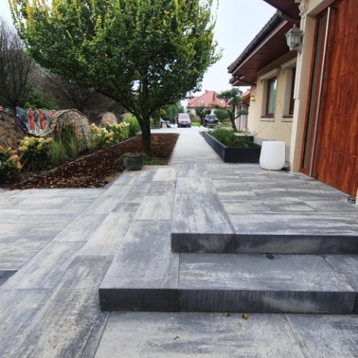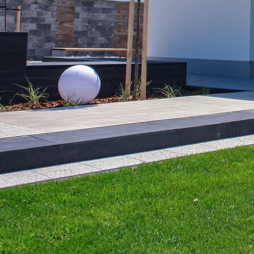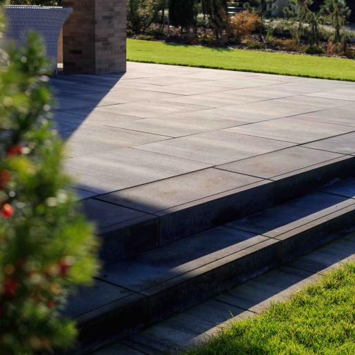 Ваш первый шаг в сад! Дифференцированная величина Ступени Grando позволяет выполнить лестницу разной ширины и высоты, а элементы с ломаной или гладкой фактурой чудесно дополняют пространство сада, выдержанного в средиземноморском стиле.